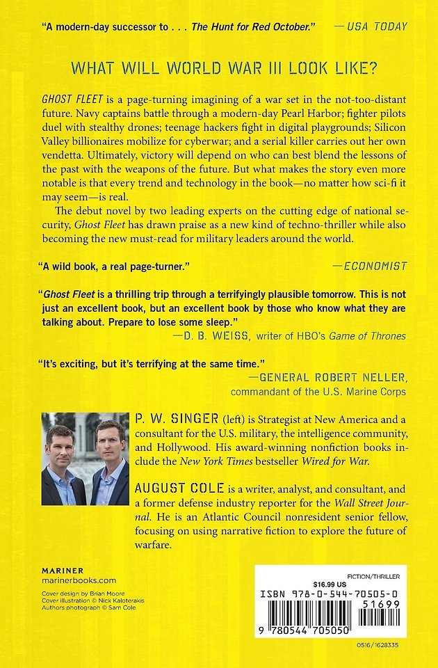 But what makes the story even more notable is that every trend and technology in book - no matter how sci-fi it may seem - is real. The debut novel by two leading experts on the cutting edge of national security, Ghost Fleet has drawn praise as a new kind of techno thriller while also becoming the new "must-read" for military leaders around the world.