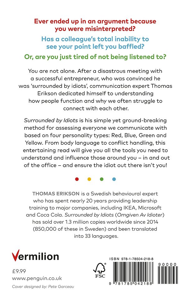 Packed with 'aha!' and 'oh no!' moments, Surrounded by Idiots will help you understand and influence those around you, even people you currently think are beyond all comprehension. And with a bit of luck you can also be confident that the idiot out there isn't you!