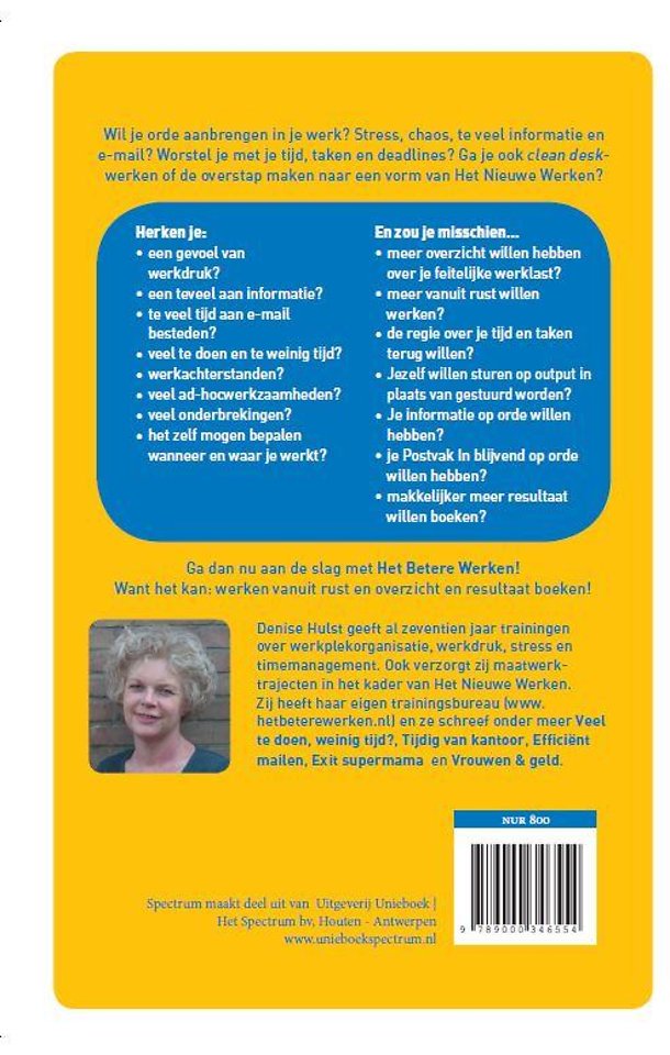 Wilt u orde aanbrengen in uw werk? Stress chaos, te veel informatie en e-mail? Worstel u met uw tijd, taken en deadlines? Gaat u ook clean desk-werken of de overstap maken naar een vorm van Het Nieuwe Werken?
