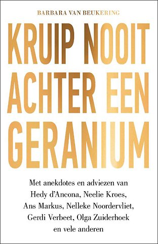 Barbara van Beukering (journalist, oud-hoofdredacteur van o.a. Het Parool) gaat in 'Kruip nooit achter een geranium' op zoek naar de eerste generatie vrouwen die oud wordt zonder het te zijn. Ze houdt zichzelf en haar rolmodellen van de huidige generatie zeventigers een spiegel voor: hoe is de vrouw van boven de vijftig veranderd in de afgelopen honderd jaar? En hoe kun je met die kennis een leuk (én gezond, sociaal, geestig, geliefd, slim en mooi) oud mens worden?