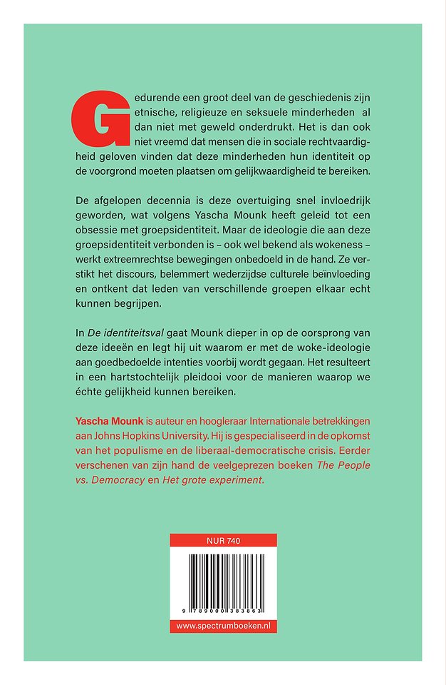 Als een van de meest gezaghebbende politiek denkers ter wereld heeft Yascha Mounk al vaak gewaarschuwd voor het gevaar dat rechts-populisme vormt voor de democratie. Maar, zo betoogt hij, hoewel de tegenstanders van extreemrechts vol goede bedoelingen handelen, dreigen ze nu in een zogenaamde ‘identiteitsval’ te lopen. De afgelopen decennia is er vanuit linkse hoek een obsessie met groepsidentiteit ontstaan die zeer snel invloedrijk is geworden. En de ideologie die aan deze groepsidentiteit verbonden is, in de volksmond bekend als ‘wokisme’, werkt extreemrechtse bewegingen nu vaak onbedoeld in de hand.