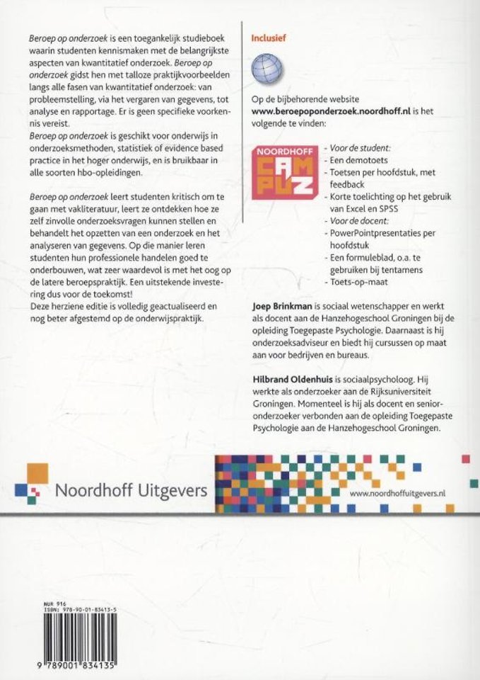De herziene editie is volledig geactualiseerd en nog beter afgestemd op de onderwijspraktijk. Geschikt voor onderwijs in onderzoeksmethoden, statistiek of evidence based practice in het hoger onderwijs, voor alle typen opleidingen.