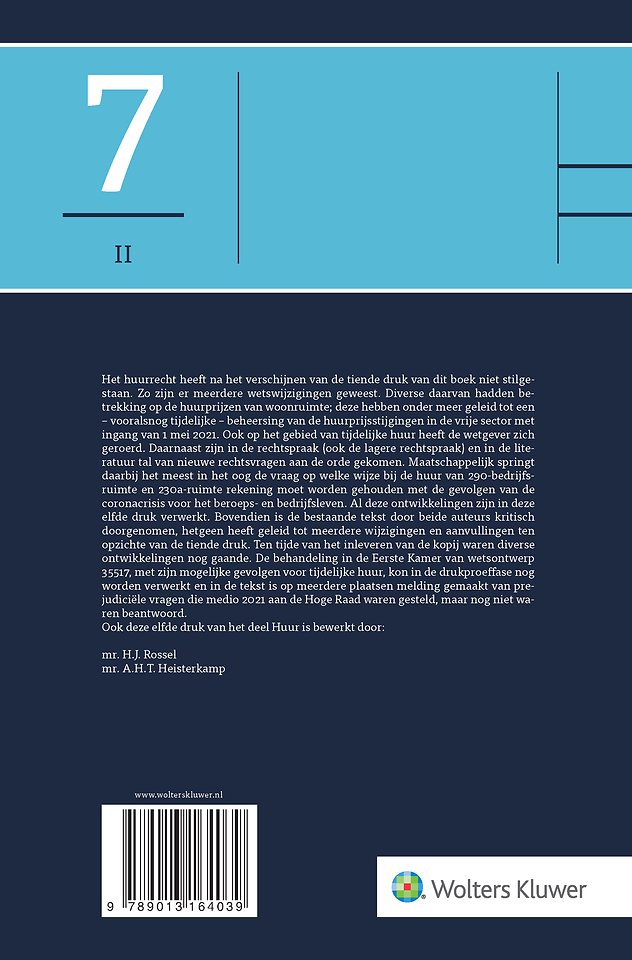 Het huurrecht heeft na de verschijning van de 10e druk van deze uitgave niet stilgestaan. Deze 11e druk is dan ook op vele fronten gewijzigd. Zo zijn er meerdere wetswijzigingen geweest. Diverse daarvan hadden betrekking op de huurprijzen van woonruimte; deze hebben onder meer geleid tot een – vooralsnog tijdelijke – beheersing van de huurprijsstijgingen in de vrije sector met ingang van 1 mei 2021. Ook op het gebied van tijdelijke huur heeft de wetgever zich geroerd. Daarnaast zijn in de rechtspraak (ook de lagere rechtspraak) en in de literatuur tal van nieuwe rechtsvragen aan de orde gekomen. Maatschappelijk springt daarbij de vraag in het oog de op welke wijze bij de huur van 290-bedrijfsruimte en 230a-ruimte rekening moet worden gehouden met de gevolgen van de coronacrisis voor het beroeps- en bedrijfsleven. Al deze ontwikkelingen en nieuwe vraagstukken hebben hun weg gevonden in deze 11e druk.