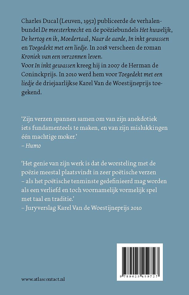 In 2012 is Charles Ducal vijfentwintig jaar dichter. In tweeënhalve decennia publiceerde Ducal zes bijzonder hechte bundels, die meermalen bekroond werden. Alle zes bundels zijn integraal opgenomen in dit mooi verzorgde boek.