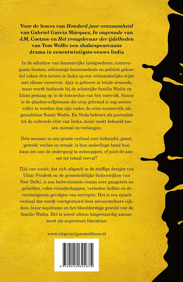 'Tijd van zonde', dat zich afspeelt in de stoffige dorpjes van Uttar Pradesh en de grootstedelijke buitenwijken van New Delhi, is een bedwelmende roman over gangsters en geliefden, valse vriendschappen, verboden liefdes en de vernietigende gevolgen van corruptie. Het is een episch verhaal dat wordt voortgestuwd door onvoorstelbare rijkdom, bizar nepotisme en het bloeddorstige geweld van de familie Wadia. Het is zowel ultiem bingewaardig amusement als superieure literatuur.