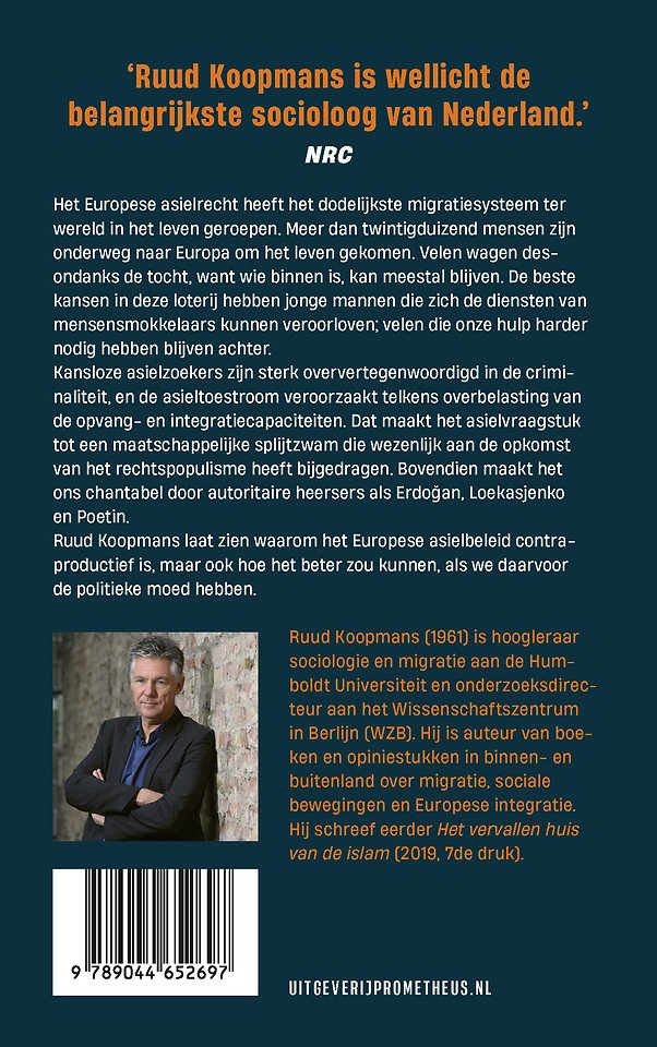 Kansloze asielzoekers zijn sterk oververtegenwoordigd in de criminaliteit, en de asieltoestroom veroorzaakt telkens overbelasting van de opvang- en integratiecapaciteiten. Dat maakt het asielvraagstuk tot een maatschappelijke splijtzwam die wezenlijk aan de opkomst van het rechtspopulisme heeft bijgedragen. Bovendien maakt het ons chantabel door autoritaire heersers als Erdoğan, Loekasjenko en Poetin. Ruud Koopmans laat zien waarom het Europese asielbeleid contraproductief is, maar ook hoe het beter zou kunnen, als we daarvoor de politieke moed hebben.