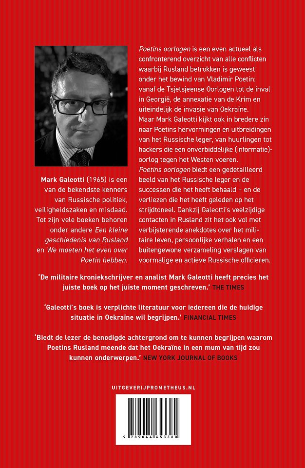 'Poetins oorlogen' biedt een gedetailleerd beeld van het Russische leger en de successen die het heeft behaald – en de verliezen die het heeft geleden op het strijdtoneel. Dankzij Galeotti’s veelzijdige contacten in Rusland zit het ook vol met verbijsterende anekdotes over het militaire leven, persoonlijke verhalen en een buitengewone verzameling verslagen van voormalige en actieve Russische officieren.