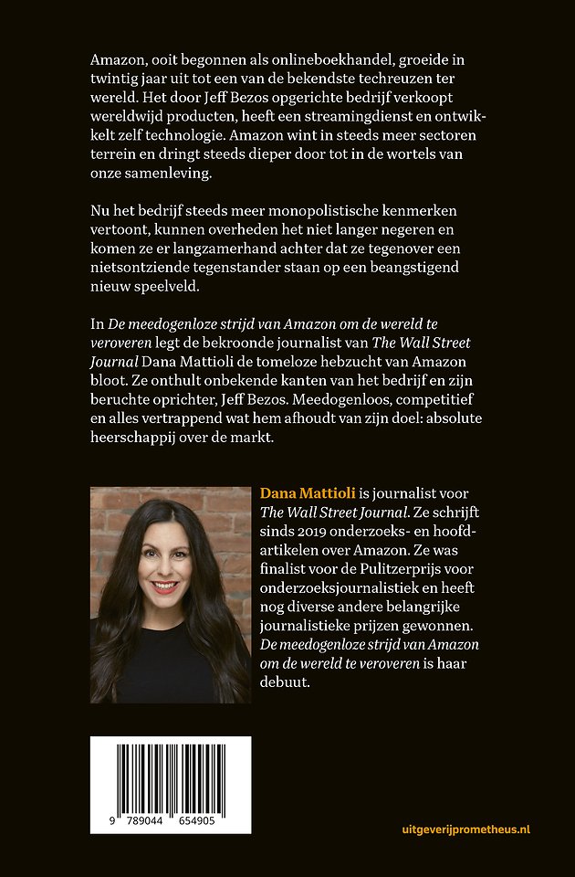 Dana Mattioli is journalist voor de Wall Street Journal. Ze schrijft sinds 2019 voorpaginanieuws over Amazon en was finalist voor de Pulitzerprijs in onderzoeksjournalistiek voor haar werk over het bedrijf. De meedogenloze strijd van Amazon om de wereld te veroveren is haar debuut.
