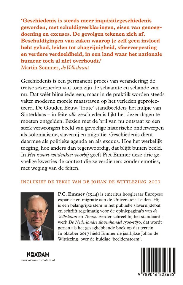 Geschiedenis dient daarmee als politieke agenda en als excuus. Hoe het werkelijk toeging, hoe anders dan tegenwoordig, dat blijft buiten beeld. In Het zwart-witdenken voorbij geeft Piet Emmer deze drie gevoelige kwesties de context die ze verdienen: zonder emoties, met weging van de feiten.