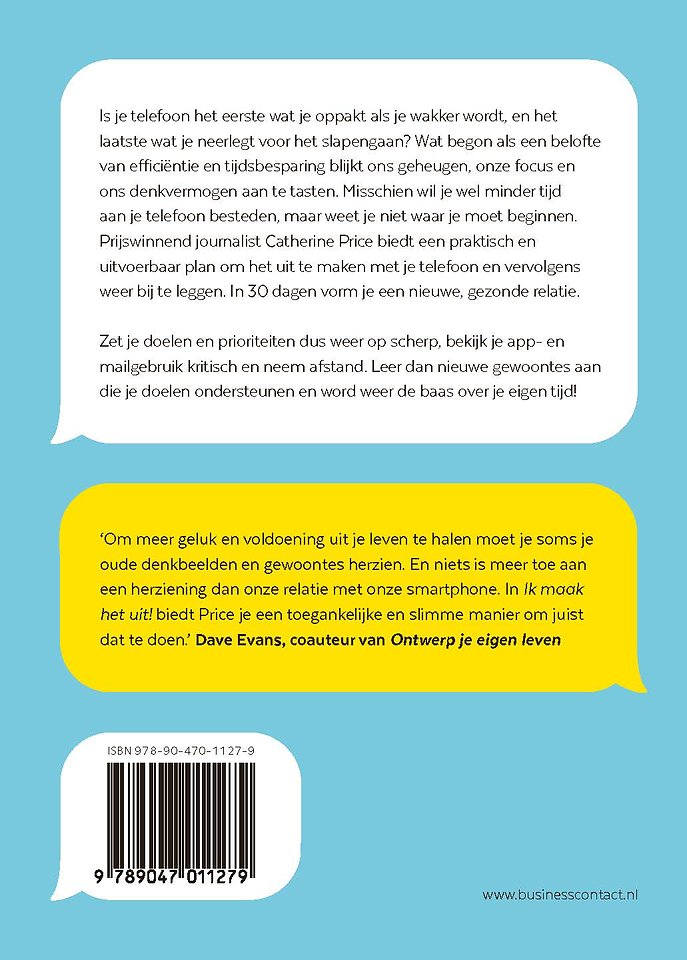 Catherine Price, wetenschapsjournaliste en schrijfster, beschrijft wat de gevolgen zijn voor ons brein, ons lichaam en onze relaties, doordat we continu online en verbonden zijn – dit is het ‘Wake Up’-deel. Vervolgens helpt ze je de relatie met je smartphone te verbreken en in 30 dagen een nieuwe, gezonde relatie te vormen.