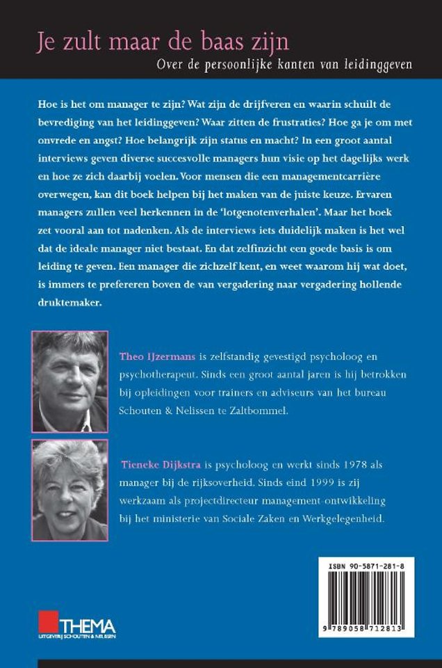 Meer over de auteursHoe is het om manager te zijn? Wat zijn de drijfveren en waarin schuilt de bevrediging van het leidinggeven? Waar zitten de frustraties? Hoe gaat u om met onvrede en angst? Hoe belangrijk zijn status en macht?
