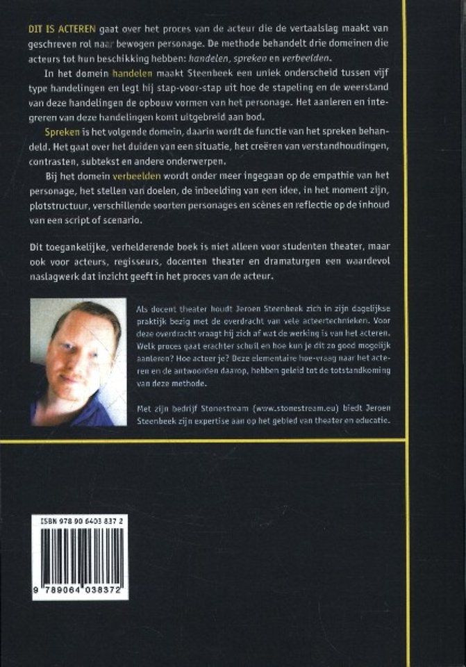 Dit is acteren Jeroen Steenbeek schreef een toegankelijk, verhelderend boek over acteren voor studenten, (beginnend) acteurs, regisseurs, dramaturgen en docenten drama.