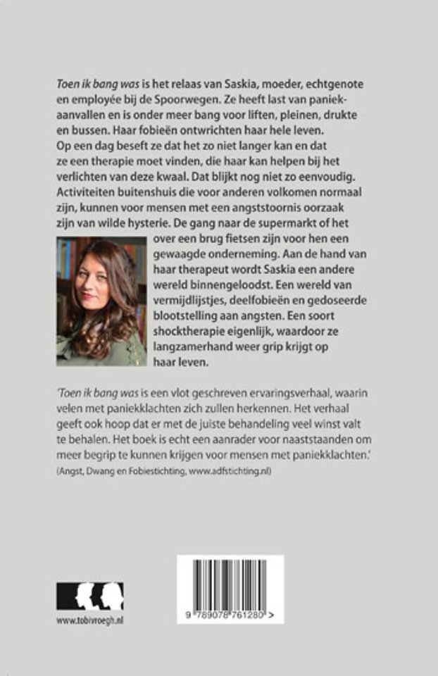Op een dag besefte ze dat ze niet meer verder kon en ging ze op zoek naar een therapie die haar kon helpen. Saskia werd aan de hand van haar therapeut een andere wereld binnengeloodst. Een wereld van vermijdlijstjes, deelfobieën en gedoseerde blootstelling aan angsten. Een soort shocktherapie eigenlijk, waardoor ze langzamerhand weer grip kreeg op haar leven.