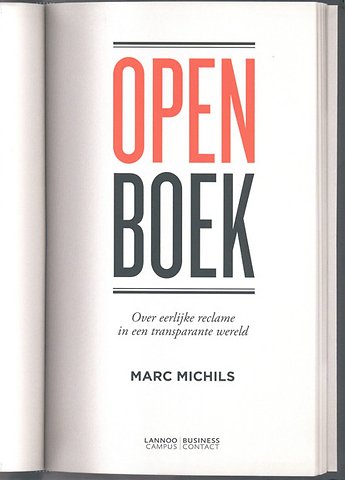 'Open boek' gaat ook over hoe open en transparant onze samenleving wordt en over hoe open en sociaal de bedrijven en de overheid zullen moeten worden. In mei '68 werd er nog luidop van gedroomd, nu heeft de burger/ consument echt de macht. Naast de vraag naar transparantie is er ook een enorme groeiende behoefte aan betrokkenheid en inspraak. Met zijn 'Open boek' laat Marc Michils u binnenkijken in de wereld van reclame en communicatie. U maakt kennis met heerlijk sterke en irriterend zwakke campagnes en ontdekt hoe u afrekent met domme, leugenachtige reclame. Want wie de consument vandaag misleidt, wordt genadeloos afgestraft.