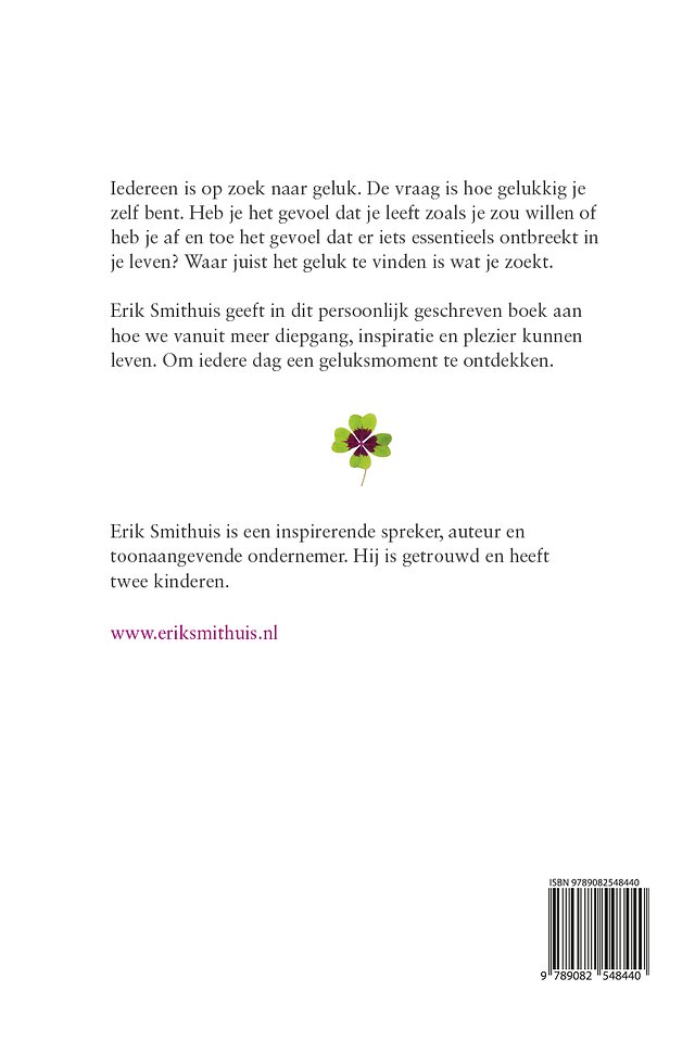 Erik Smithuis geeft in dit persoonlijk geschreven boek aan hoe we vanuit meer diepgang, inspiratie en plezier kunnen leven. Om iedere dag een geluksmoment te ontdekken.