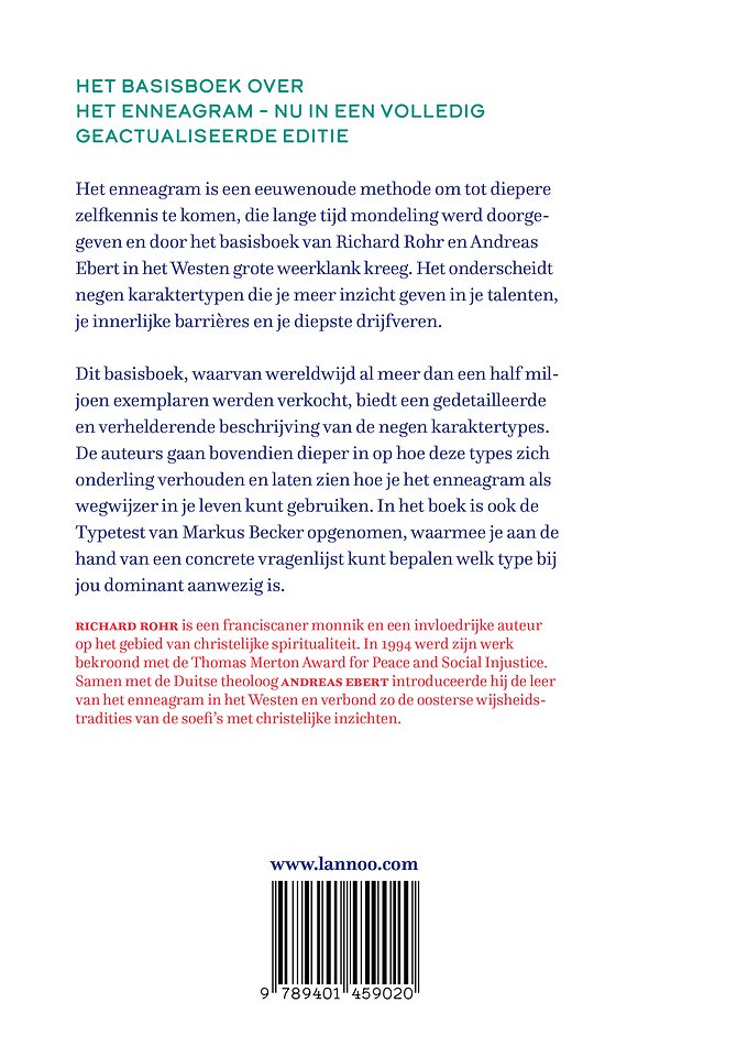 Het enneagram is een eeuwenoude methode om tot diepere zelfkennis te komen, die lange tijd mondeling werd doorgegeven en door het basisboek van Richard Rohr en Andreas Ebert in het Westen grote weerklank kreeg. Het onderscheidt negen karaktertypen die je meer inzicht geven in je talenten, je innerlijke barrières en je diepste drijfveren.