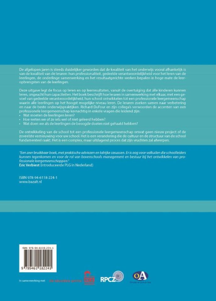 Deze uitgave legt de focus op leren en op leerresultaten, vanuit de overtuiging dat álle kinderen kunnen leren, ongeacht hun capaciteiten. Het boek beschrijft hoe leraren in samenwerking met elkaar, met een gevoel van gedeelde verantwoordelijkheid, hun school ontwikkelen tot een professionele leergemeenschap waarin alle leerlingen op het hoogst mogelijke niveau leren. De leraren zoeken samen naar verbetering en naar de beste onderwijspraktijken. Richard DuFour en zijn collega's verwoorden de accenten van een professionele leergemeenschap kernachtig in enkele vragen die leidend zijn: