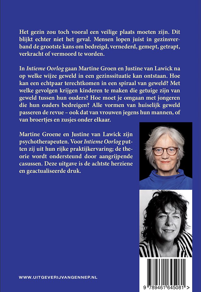 Martine Groene en Justine van Lawick zijn psychotherapeuten. Voor Intieme Oorlog putten zij uit hun rijke praktijkervaring; de theorie wordt ondersteund door aangrijpende casussen. Deze uitgave is de achtste herziene en geactualiseerde druk.