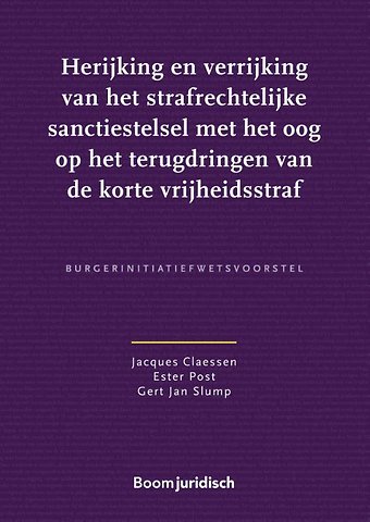Korter gezegd: deze publicatie betreft het wetsvoorstel strekkende tot een herijking en verrijking van het strafrechtelijke sanctiestelsel met het oog op het terugdringen van de korte vrijheidsstraf. Het is in feite een ‘burgerinitiatiefwetsvoorstel’, nu het voorstel tot stand is gekomen vanuit de wetenschap en de rechtspraktijk – bottom up derhalve.
