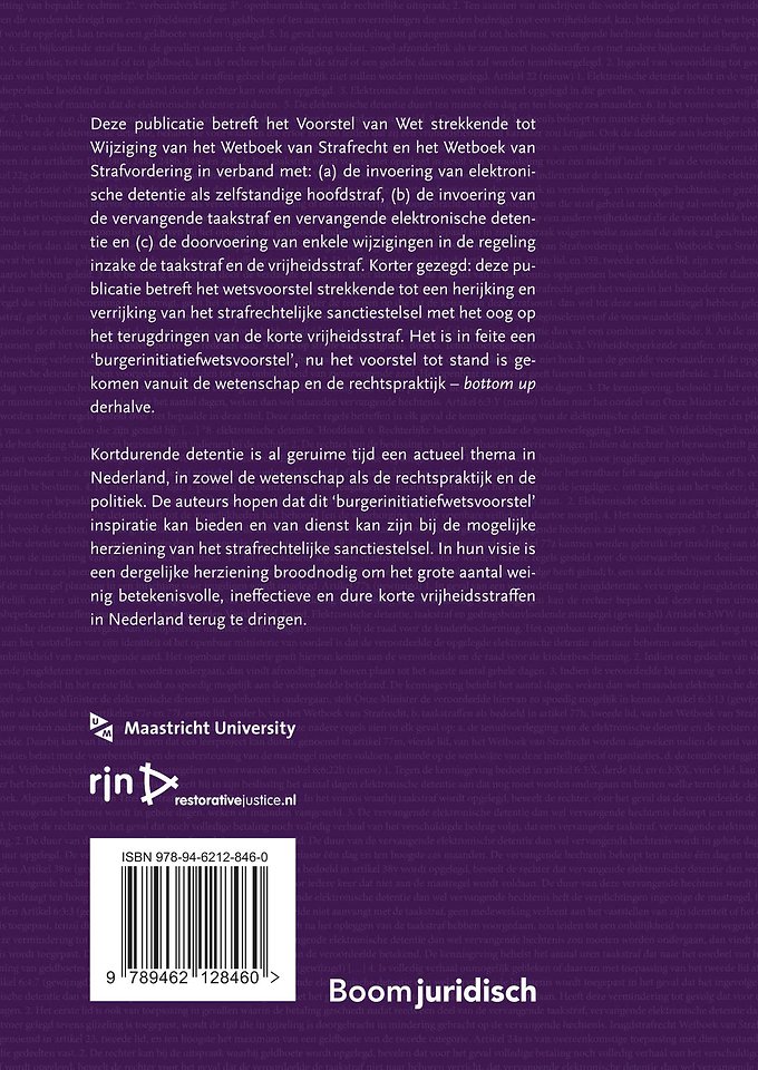 Kortdurende detentie is al geruime tijd een actueel thema in Nederland, in zowel de wetenschap als de rechtspraktijk en de politiek. De auteurs hopen dat dit ‘burgerinitiatiefwetsvoorstel’ inspiratie kan bieden en van dienst kan zijn bij de mogelijke herziening van het strafrechtelijke sanctiestelsel. In hun visie is een dergelijke herziening broodnodig om het grote aantal weinig betekenisvolle, ineffectieve en dure korte vrijheidsstraffen in Nederland terug te dringen.