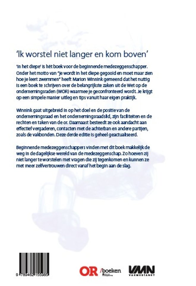 'In het diepe' is het boek voor de beginnende medezeggenschapper. Onder het motto van "je wordt in het diepe gegooid en moet maar zien hoe je leert zwemmen" hebben Inge Hofstee en Marion Winnink gemeend dat het nuttig is een boek te schrijven over de belangrijkste zaken uit de Wet op de ondernemingsraden (WOR) waarmee u geconfronteerd wordt. U krijgt op een simpele manier uitleg en tips vanuit hun eigen praktijk.