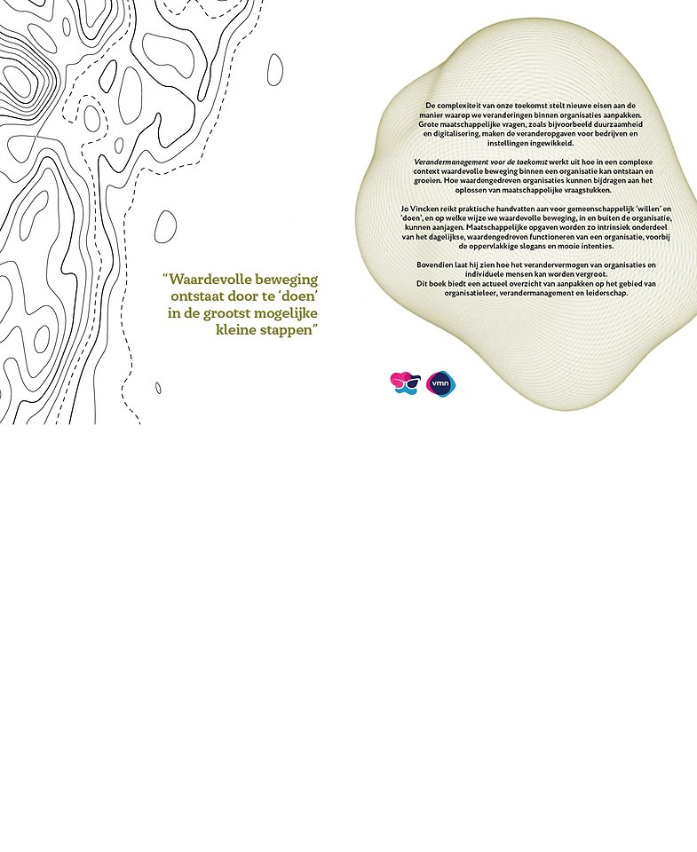 Jo Vincken reikt praktische handvatten aan voor gemeenschappelijk ‘willen’ en ‘doen’, en op welke wijze we waardevolle beweging, in en buiten de organisatie, kunnen aanjagen. Maatschappelijke opgaven worden zo intrinsiek onderdeel van het dagelijkse, waardengedreven functioneren van een organisatie, voorbij de oppervlakkige slogans en mooie intenties.