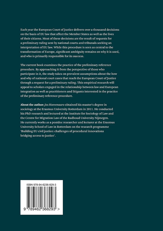 The current book examines the practice of the preliminary reference procedure. By approaching it from the perspective of those who participate in it, the study takes on prevalent assumptions about the how and why of national court cases that reach the European Court of Justice through a request for a preliminary ruling. This empirical research will appeal to scholars engaged in the relationship between law and European integration as well as practitioners and litigants interested in the practice of the preliminary reference procedure.