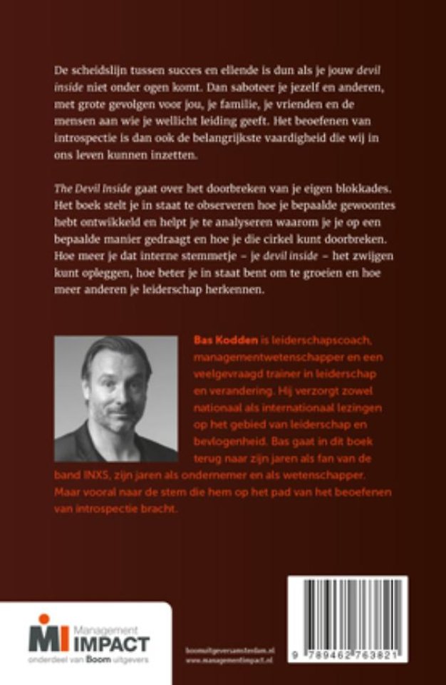 'The Devil Inside' gaat over het doorbreken van je eigen blokkades. Het boek stelt je in staat te observeren hoe je bepaalde gewoontes hebt ontwikkeld en helpt je te analyseren waarom je je op een bepaalde manier gedraagt en hoe je die cirkel kunt doorbreken. Hoe meer je dat interne stemmetje – je devil inside – het zwijgen kunt opleggen, hoe meer je in staat bent om te groeien en hoe meer anderen je leiderschap herkennen.