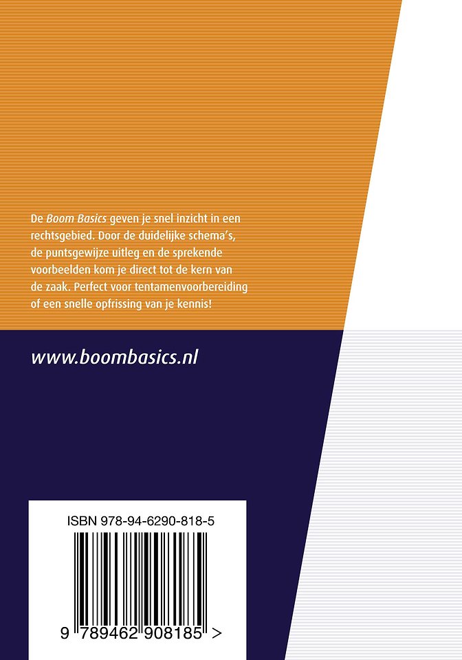 De Boom Basics geven je snel inzicht in een rechtsgebied. Door de duidelijke schema’s, de puntsgewijze uitleg en de sprekende voorbeelden kom je direct tot de kern van de zaak. Perfect voor tentamenvoorbereiding of een snelle opfrissing van je kennis!