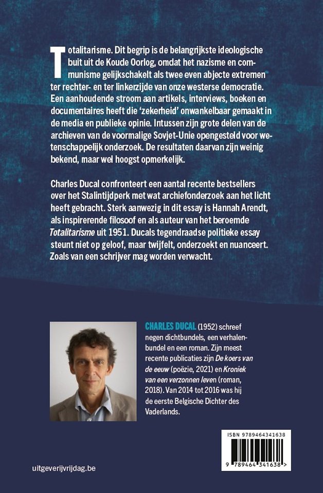 Charles Ducal confronteert een aantal recente bestsellers over het Stalintijdperk met wat archiefonderzoek aan het licht heeft gebracht. Sterk aanwezig in dit essay is Hannah Arendt, als inspirerende filosoof en als auteur van het beroemde Totalitarisme uit 1951. Ducals tegendraadse politieke essay steunt niet op geloof, maar twijfelt, onderzoekt en nuanceert. Zoals van een schrijver mag worden verwacht.