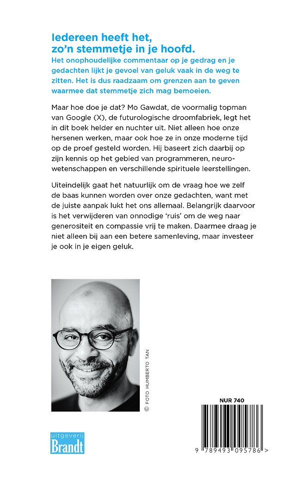 Maar hoe doe je dat? Mo Gawdat, de voormalig topman van Google (X), de futurologische droomfabriek, legt het in dit boek helder en nuchter uit. Niet alleen hoe onze hersenen werken, maar ook hoe ze in onze moderne tijd op de proef gesteld worden. Hij baseert zich daarbij op zijn kennis op het gebied van programmeren, neuro-wetenschappen en verschillende spirituele leerstellingen.