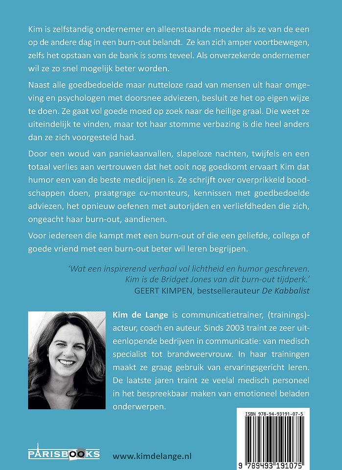 Door een woud van paniekaanvallen, slapeloze nachten, twijfels en een totaal verlies aan vertrouwen dat het ooit nog goedkomt ervaart Kim dat humor een van de beste medicijnen is. Ze schrijft over overprikkeld boodschappen doen, praatgrage cv-monteurs, kennissen met goedbedoelde adviezen, het opnieuw oefenen met autorijden en verliefdheden die zich, ongeacht haar burn-out, aandienen.