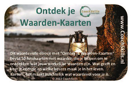 Waarden vormen een basis voor onze overtuigingen en sturen ons gedrag. Daarom is het werken met waarden in een coachtraject essentieel. Dit spel bevat 50 waardenkaarten met bijpassende afbeeldingen die tot de verbeelding spreken. Dit helpt om te onderzoeken wat je werkelijke waarden zijn, hoe ze je leven beïnvloeden en wat ze voor je betekenen.