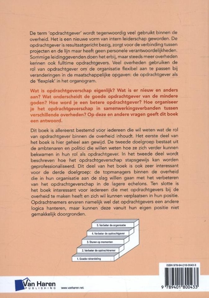 Dit boek is allereerst bestemd voor iedereen die wil weten wat de rol van opdrachtgever binnen de overheid inhoudt. Het eerste deel van het boek is hier geheel aan gewijd. De tweede doelgroep bestaat uit de ambtenaren en politici die willen weten hoe ze zich verder kunnen bekwamen in hun rol als opdrachtgever. In het tweede deel wordt beschreven hoe het opdrachtgeverschap stapsgewijs kan worden geprofessionaliseerd. Dit deel van het boek is ook zeer interessant voor de derde doelgroep: de topmanagers binnen de overheid die in hun organisatie aan de slag willen gaan met het verbeteren van het opdrachtgeverschap in de lagere echelons. Ten slotte is het boek interessant voor iedereen die met opdrachtgevers bij de overheid te maken heeft en zich wil kunnen verplaatsen in hun positie. Opdrachtnemers ervaren namelijk wel dat opdrachtgevers een andere logica hanteren, maar kunnen deze vanuit hun eigen positie niet gemakkelijk doorgronden.